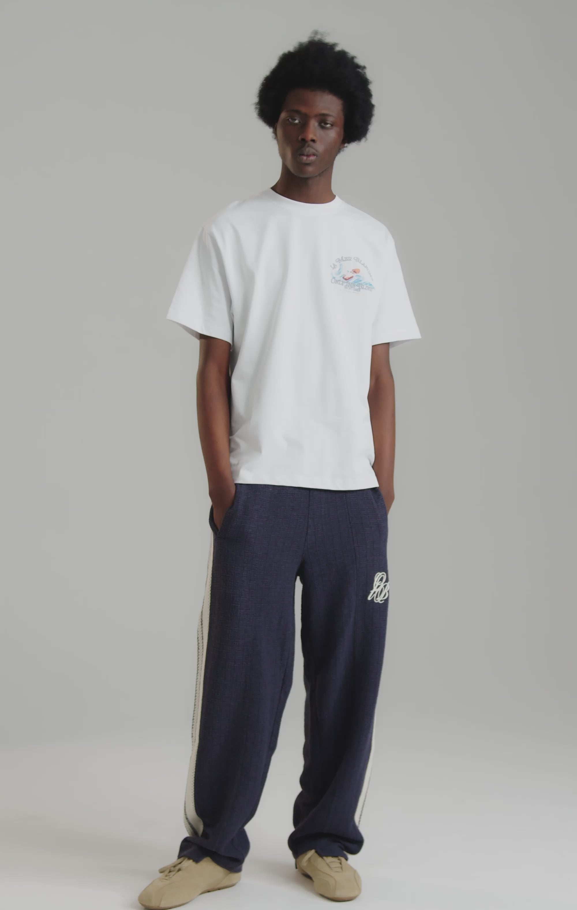 At the centre of the collection, the La Mer Blanche T-Shirt captures the spirit of the Riviera in motion. The artwork was originally hand-painted by our illustrator in our London studio, inspired by vintage speedboats cutting through Mediterranean waters and the timeless glamour of yacht club culture.