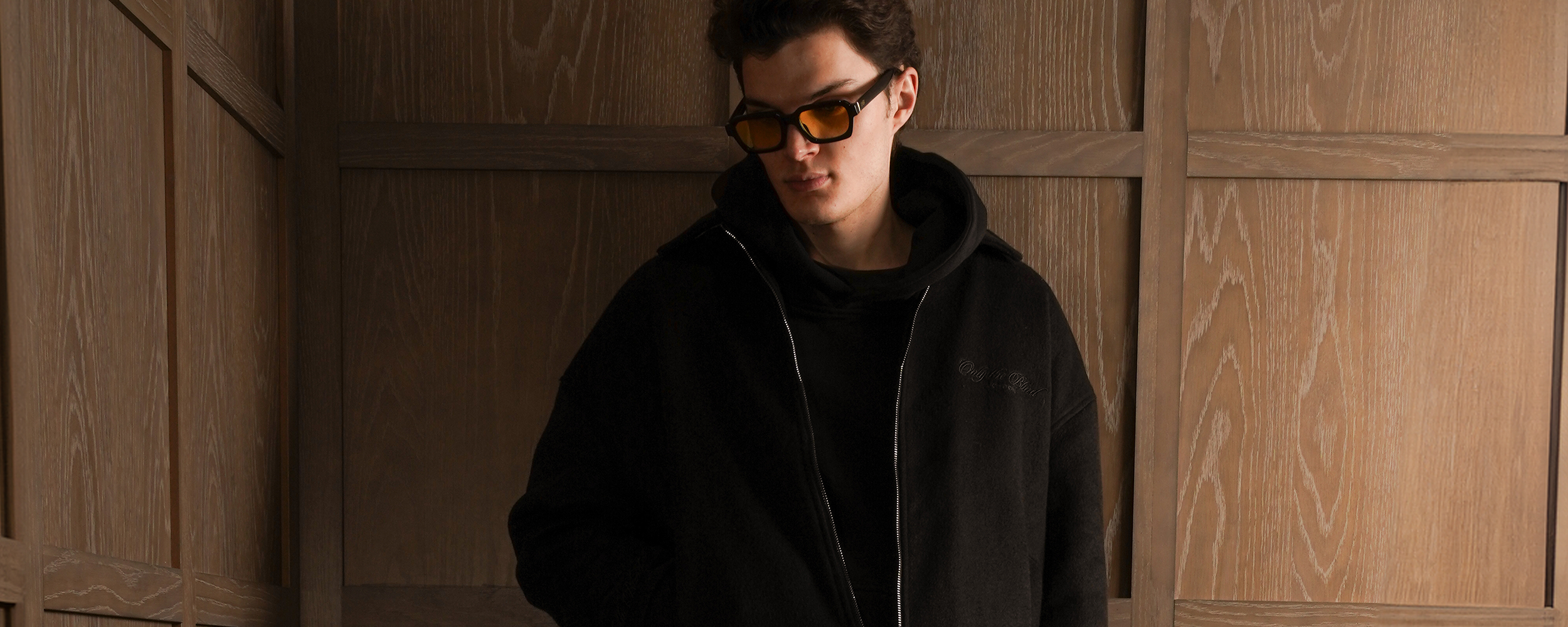 LEATHER APPLIQUE KNIT SWEATSHIRT
