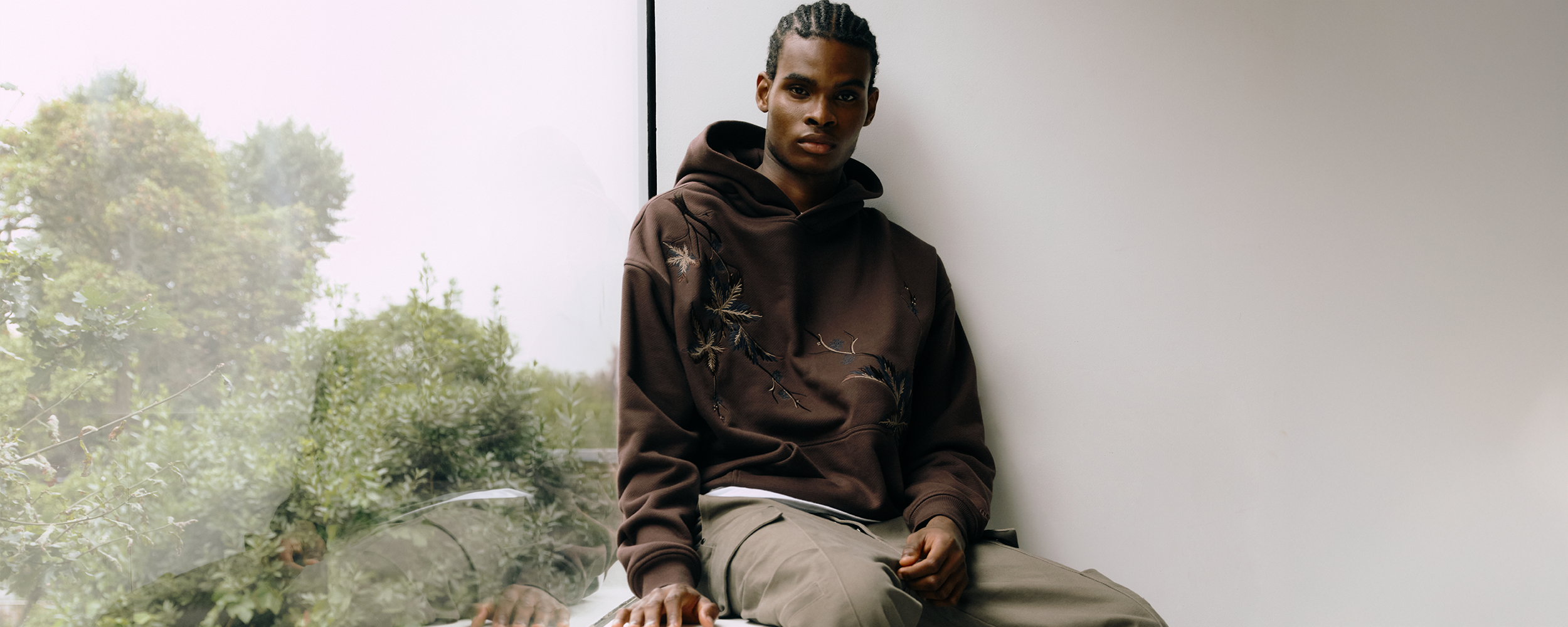 LEATHER APPLIQUE KNIT SWEATSHIRT